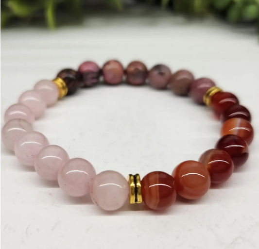 "Self Love" Bracelet - Rose Quartz/Banded Carnelian/Rhodonite