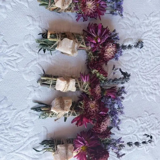 6" INTUITION Floral Smudge Wand - Moonstone, Lavender and Palo Santo