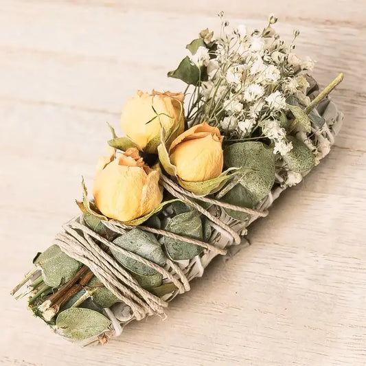4" GUARDIAN ANGEL PROTECTION Dried Floral Sage Wand - Yellow Rose