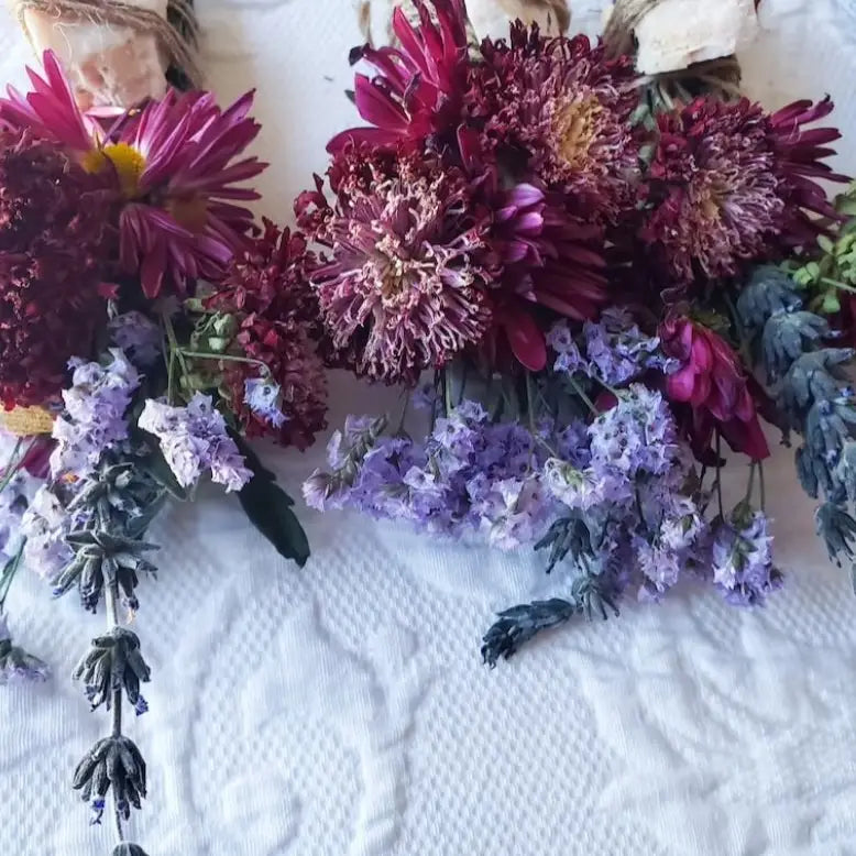 Please note that these will come dried! The photos with fresh flowers were just new batches photographed to get the listing back up quickly. Each batch will vary in appearance sometimes flower stock will vary.