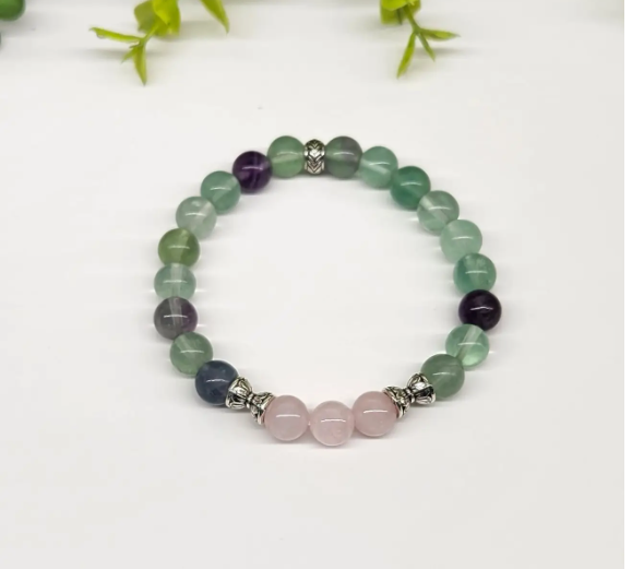 "Inner Peace & Calm" Bracelet - Rose Quartz & Rainbow Fluorite