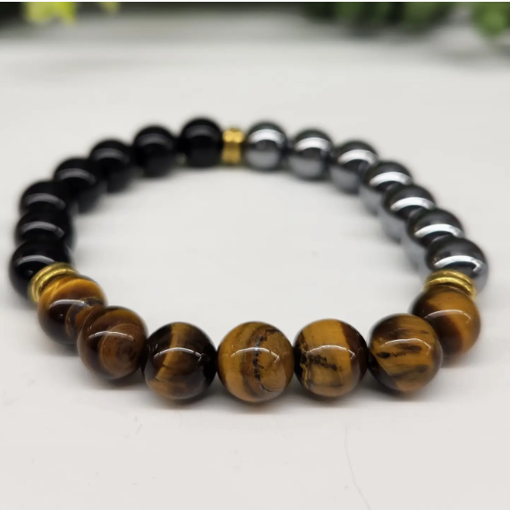 Elevate your sense of security and inner strength with our Triple Protection Bracelet, a formidable combination of Hematite, Tiger Eye, and Black Obsidian. Crafted with meticulous attention to detail, this stretchable bracelet is not just a piece of jewelry but a powerful talisman, providing a shield of protection for your mind, body, and spirit.